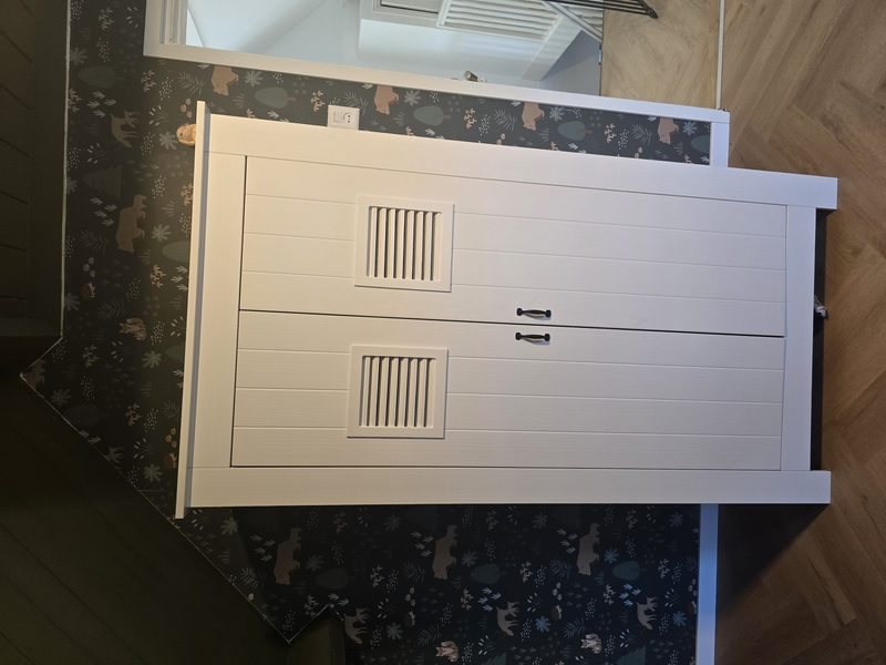 Een ledikant, kledingkast en commode. Alles is nog in nette staat, wellicht hier en daar wat verf vervaagd. Merk TWF